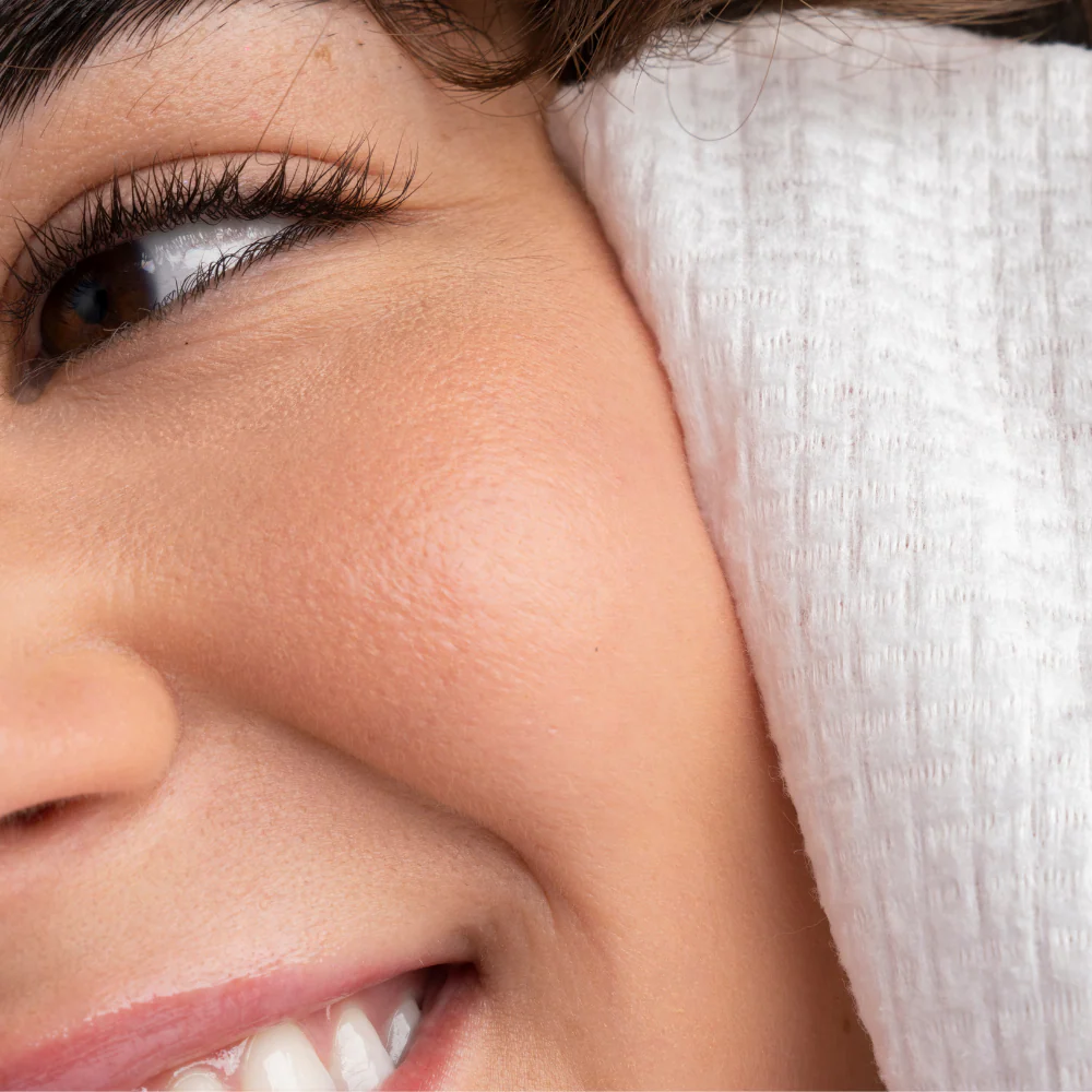 - Makeup removal — wet towel with warm water to gently remove makeup and cleanser.